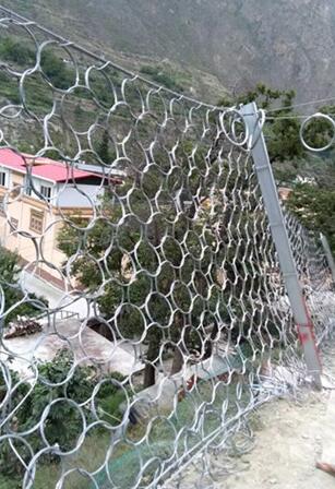 適用于建筑設(shè)施旁有緩沖地帶的高山峻嶺,把巖崩、飛石、雪崩、泥石流攔截在建筑設(shè)施之外,避開災(zāi)害對建筑設(shè)施的毀壞。攔截強度足以吸收和分散傳遞250KJ-2000KJ以內(nèi)的落石沖擊動能,消能環(huán)的設(shè)計和采用使系統(tǒng)的抗沖擊能力得到進一步的提高,特殊設(shè)防能高達撞擊能5000KJ以內(nèi)的落石。